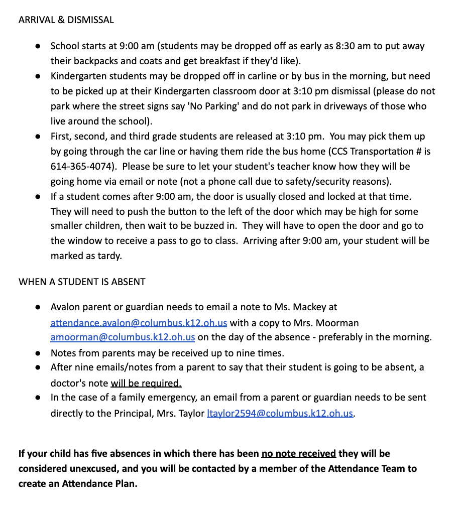 Arrival, Dismissal, and Absences