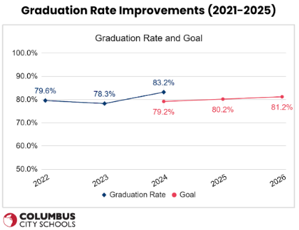 September 10, 2025 -- Columbus City Schools (CCS) students are achieving more than ever according to the latest data prepared for the Columbus City Schools Board of Education, the past year saw rising math scores, graduation rates above the Board’s annual goal, as well as a 15-point increase in the Performance Index on the latest Ohio Department of Education and Workforce Report Card since the pandemic.